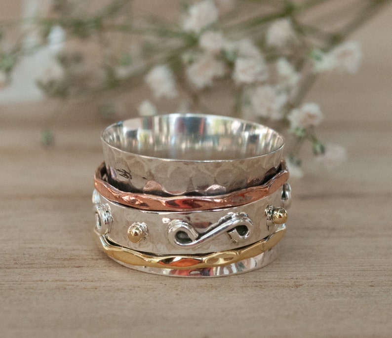 Spinning Ring Meditation Spinner Spin Anxiety Hammered Concave Sterling Silver Bronze Jewelry Bycila Gift For Her Bjs006