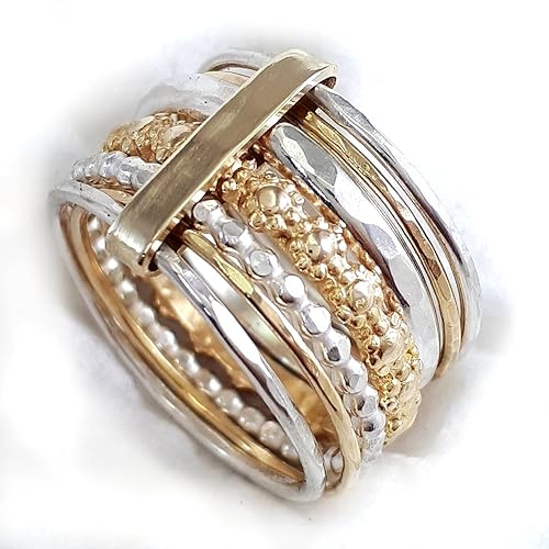 Amazon Com Delicate Wedding Band Unusual Ring Silver And Gold