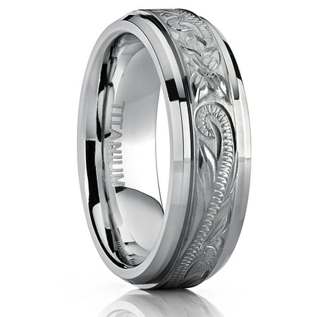 Men S Women S Hand Engraved Titanium Wedding Ring Unisex Band Comfort Fit 7mm